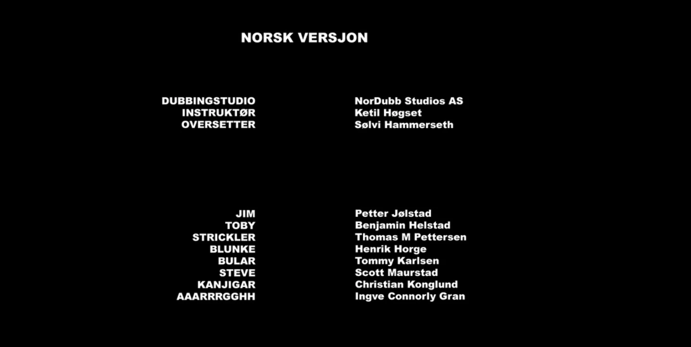 - Innspillingsstudio: NorDubb Studios AS